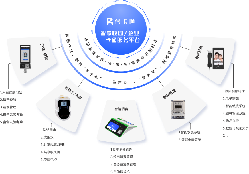 蓉卡通智慧校園/企業(yè)一卡通服務(wù)平臺(tái),基于B/S架構(gòu),采用“ 一平臺(tái)+一庫(kù)+N應(yīng)用” 的設(shè)計(jì)思路, 以3D人臉、掌靜脈識(shí)別、IC卡、CPU卡、二維碼、密碼…為介質(zhì),從高效軟件應(yīng)用和智能終端設(shè)備兩個(gè)方向, 全場(chǎng)景拓展智慧校園服務(wù)邊界, 著力打造一站式一卡通系統(tǒng)服務(wù)平臺(tái)。